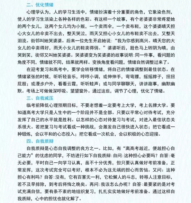 考后適當(dāng)休息,避免相互對(duì)答案